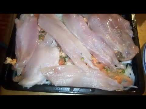 Reineta al horno / pescado al horno - Como Preparar Reineta Al Horno - 1 cebolla 1 tomate 1 trozo de pimiento 1 chorizo o longaniza 1 limon jugoso Reineta o pescado que guste Aliños a elección.