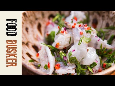 Raw Shrimp Ceviche Recipe }}- Yo, yo yo food buskers and food buskettes. Today I'm back at Camden and on the busk serving up the Peruvian classic that is the Ceviche! It's basically kind of ...