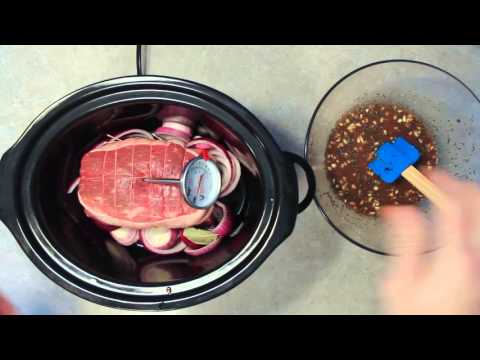 Rosbif Mijoteuse }}- 1 rôti de bœuf (rosbif) d'environ 2-3 lbs 1 gros oignon rouge coupé en rondelles 4 gousses d'ail hachées 1 tasse de bouillon de bœuf 1 c.à.s. (15 ml) de sauce ...