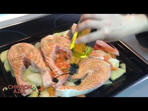 SALMON AL HORNO - Salmon Al Horno Con Championes - http://recetas-chipironazul.blogspot.com.es/ https://plus.google.com/u/0/116319938958051676809/posts https://twitter.com/chipironazul Video-receta de salmón ...