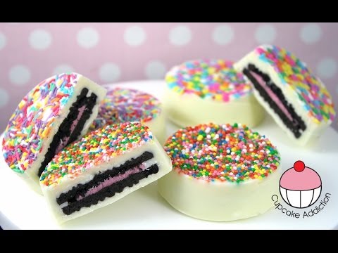 Choc Coated OREOS with Rainbow Sprinkles - By Cupcake Addiction - Oreo Sprinkles - Get my NEW COOKBOOK: http://bit.ly/MCAbook Choc coated OREOS are great No Bake treat for any party, but there are tricks to getting your OREOS coated ...